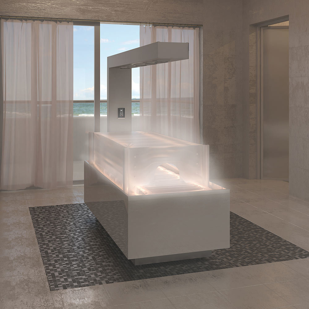 Душ Виши "Libra EDGE K" - Новые дизайнерские кушетки для влажных процедур Libra открывают новые горизонты для сегментов индустрии красоты и здоровья. Благодаря горизонтальному душевому кронштейну впервые возможно принимать душ лежа, что помогает достичь полной релаксации. Интегрированная технология двух разных душевых модулей обеспечивает баланс температуры и напора воды, которых осуществляется с помощью инновационной контрольной панели. Такое сочетание современного дизайна и технологий обеспечит уникальную атмосферу в каждом SPA-салоне. Прочный и легкий в уходе материал не только завораживает своей элегантной текстурой камня, но и дарит вам приятные тактильные ощущения.